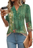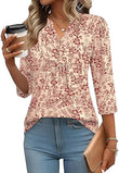 - [Designs]: This blouse features a loose fit, pleating detail, a cute henley v-neck, and 3/4 puff sleeves, a charming curved hem, offering a casual, stylish look, suitable for various occasions and body types, a business work top, multiple floral print blouses.
